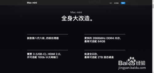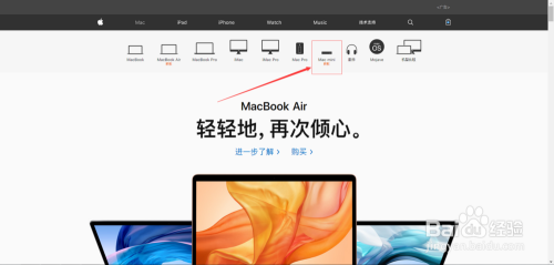 进入到官网后,点击Mac,选择mini进入到mini的界面,如下图所示。