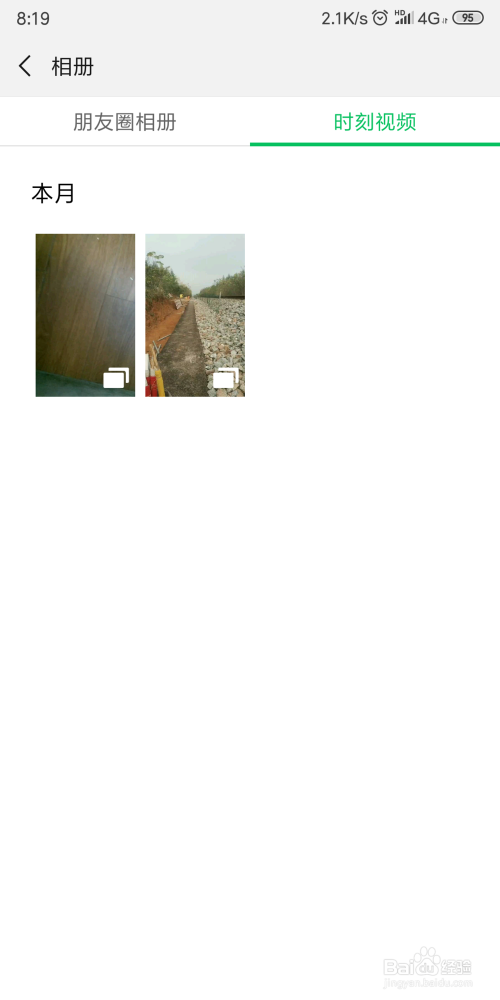 在相册页面点击上方的时刻短视频如许,就可以看到本身所发布的所有时刻的视频了,可是别人是无法看到的
