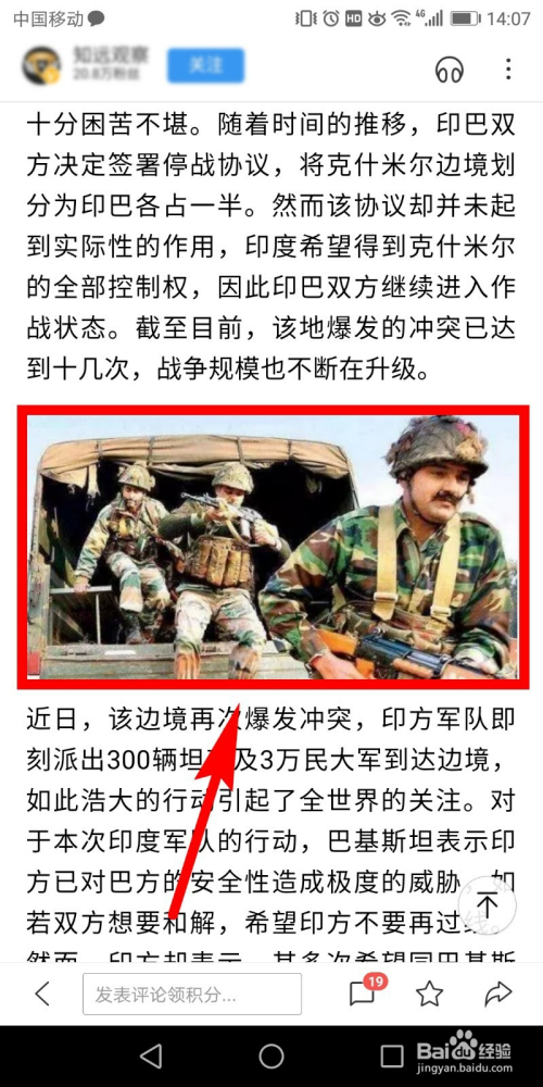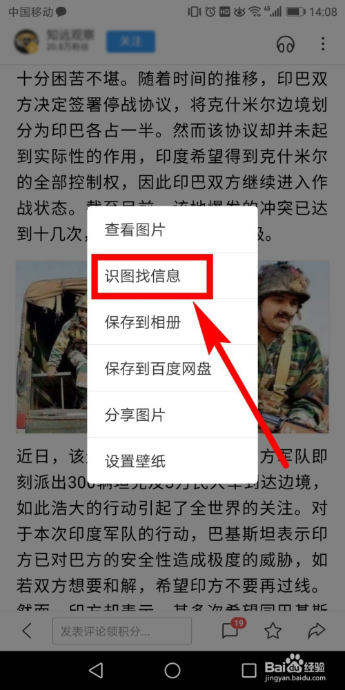 打开图文资讯文章今后,在文章中找到图片,并长按该图片。