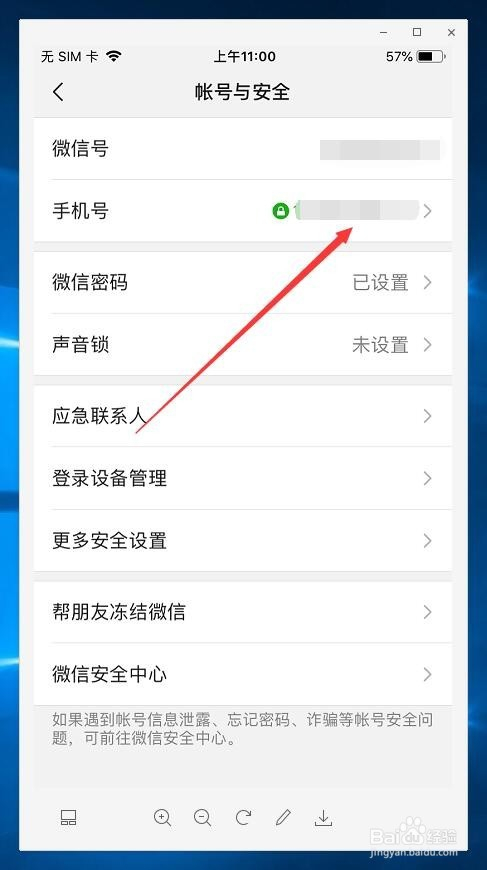 在账号与平安设置中我们可以看到当前手机号,此时点击这个手机号