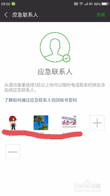 添加本身信赖的的应急联系人