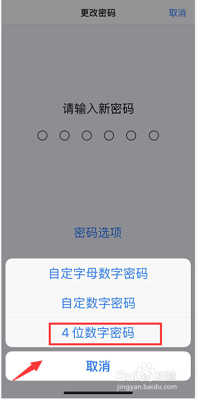 密码选项点击4位密码,我们也可以利用自定以带字幕的密码,如下图所示