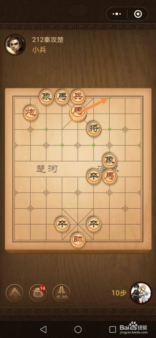 第十步馬移动到下图中箭头标注的位置就过关了。