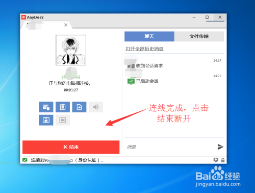 我们在毗连对方电脑今后我们就可以协助处置问题了,在处置完当作后点击竣事完当作长途会话。