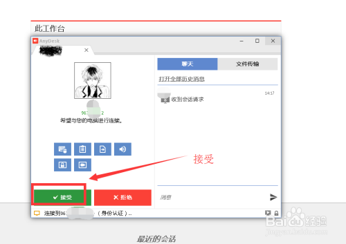 对方用户在电脑上点击接管,我们就毗连到对方的电脑上了。