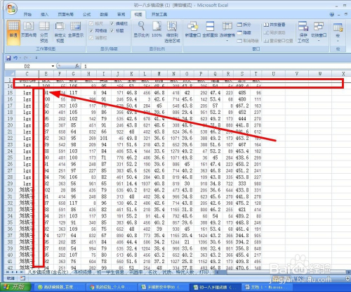 打开一个含有较大都据的电子表格文档,可以看到因为有较多的数据,有时需要查看数据时却不知道在哪一类