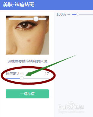 在左侧所示的处所选择调节祛痘笔的大小,直到合适为止。