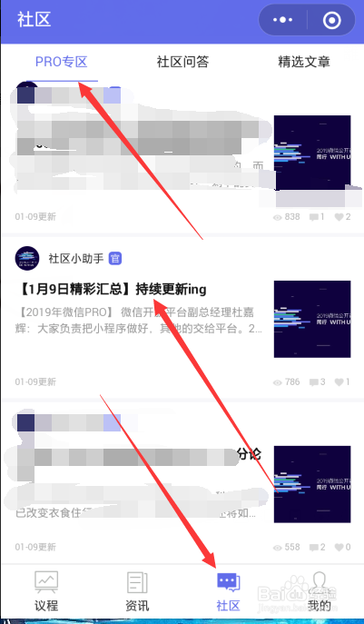 之后大师在【社区】的【Pro社区】中滑动页面找到【1月9日出色汇总】文章,打开它