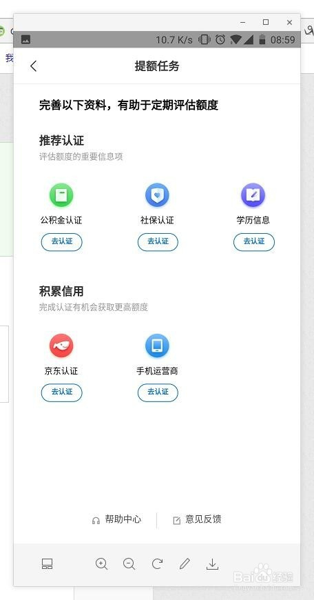 进入后我们可以看到保举认证的,这里首推公积金社保认证,小编这里演示收益运营商认证,点击下面的去认证