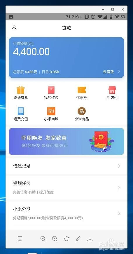 今朝我们利用小米的这个贷条目软件的时辰初始价钱是4000元,这个价钱显然不敷我们利用的,那么我们怎么样才能让额度晋升呢,具体方式如下