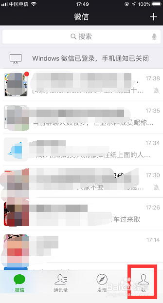 登录进入微信后,在微信页面右下角找到【我】图标(如图所示),点击【我】图标,进入我的本家儿页!