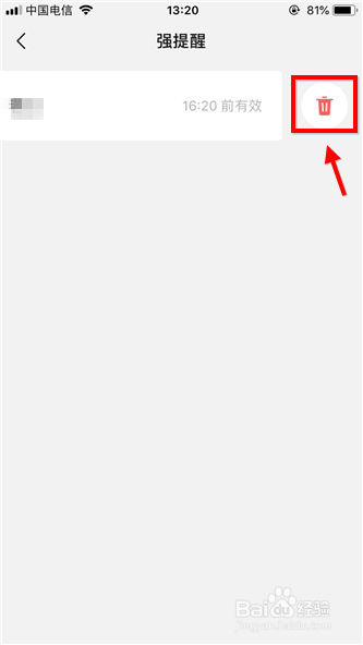 选中一个被设置为强提醒的联系人,然后点击此联系人,最后点击垃圾桶。