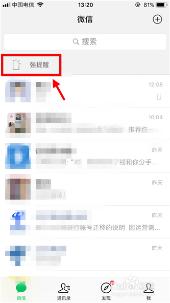 回到对话列表页面,此时在列表上方多出强提醒选项,点击查看名单。