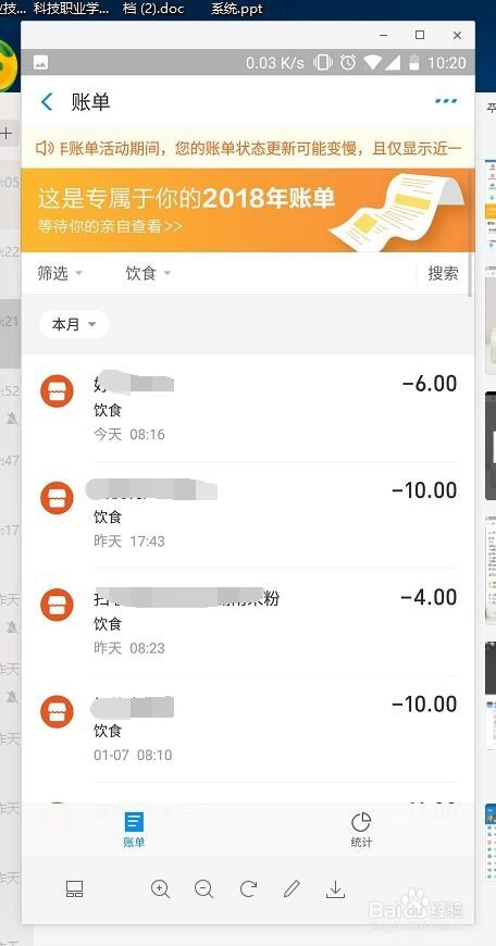 如点击饮食,此时我们就进入了饮食的根基账单,我们可以发现此时我们的日常饮食支出都在这里