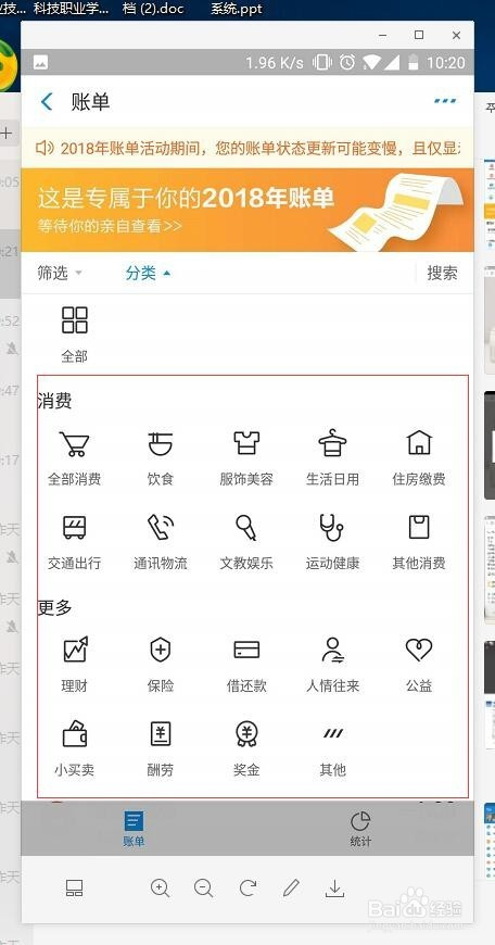 然后我们就可以看到本身的所有账单,此时在如图的处所找到分类选项