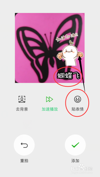 可以点击“添加字幕”、“去布景”、“加快播放”、“贴脸色”,增添建造的结果,最后点击【添加】。