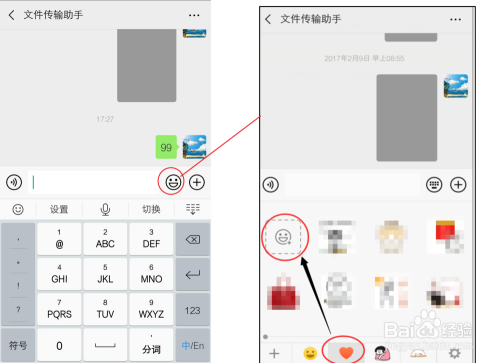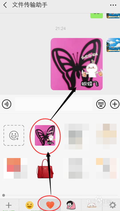 点击聊天,选择脸色包,点击“爱心”(保藏脸色的处所),选择“笑脸”。