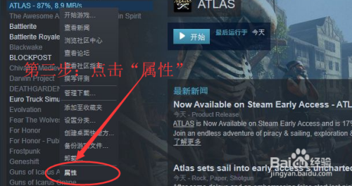 Atlas中文设置步调三:右击Altas游戏今后,游戏玩家继续点击右击菜单中的“属性”选项。