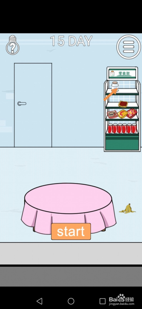 第15关先点击零食架上的零食,然后将零食拖动到门口,最后点击start就可以过关了。