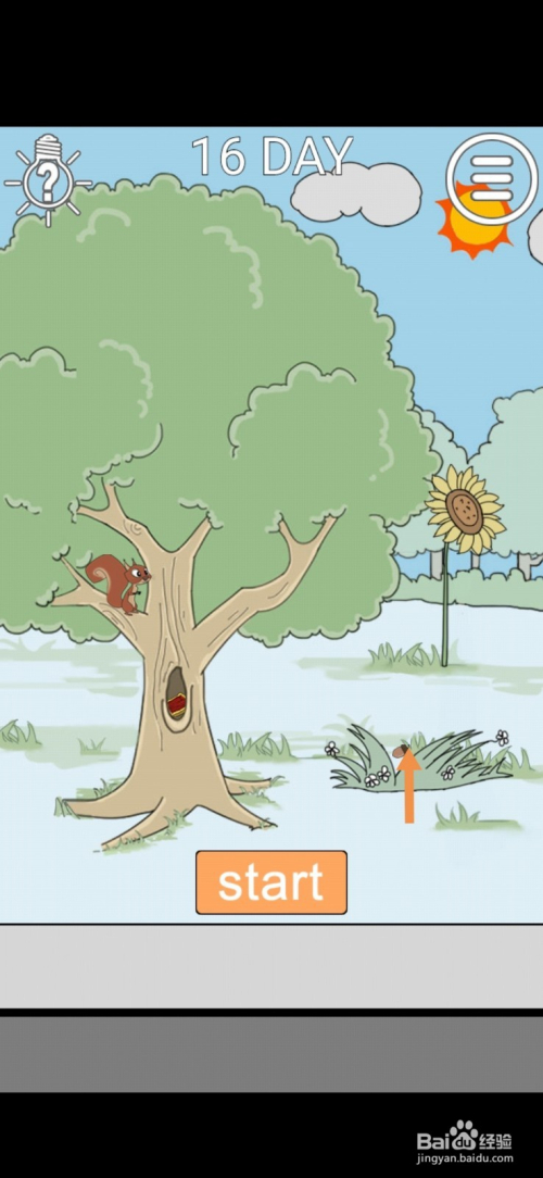 获得橡果后,将橡果拖动到松鼠身上,然后点击start就可以过关了。