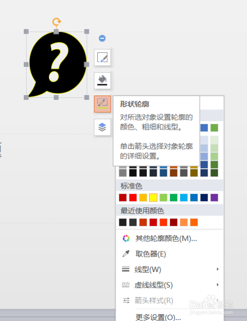 选中图形右击选择设置图形线条的颜色,如许问号标记我们建造完当作了。