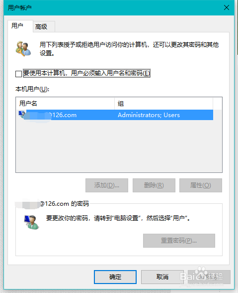输入号令 control userpasswords2 ,之后点击确定,会呈现如图所示的对话框。