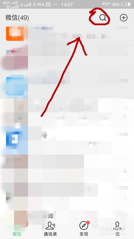 首先我们打开手机,登岸微信,来到微信的首页,然后我们点击上方的搜刮,进入搜刮界面。