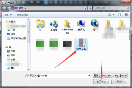打开窗口中,按照路径找到mdp格局文件选中,并点击打开。