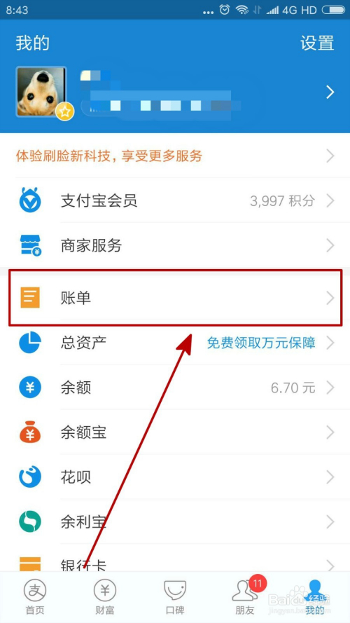因为账单具有私密性,我们需要先验证身份,输入付出密码。