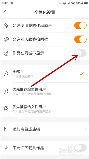 个性化设置里点击【作品不在同城显示】。
