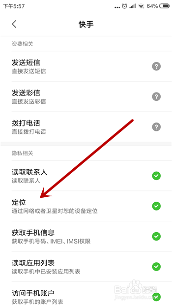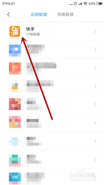 第二个手机定位设置,点击【快手】的权限设置。
