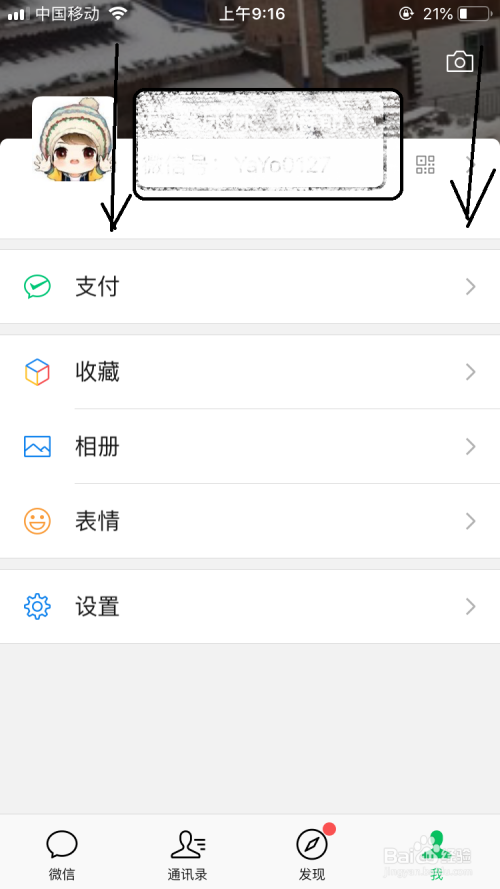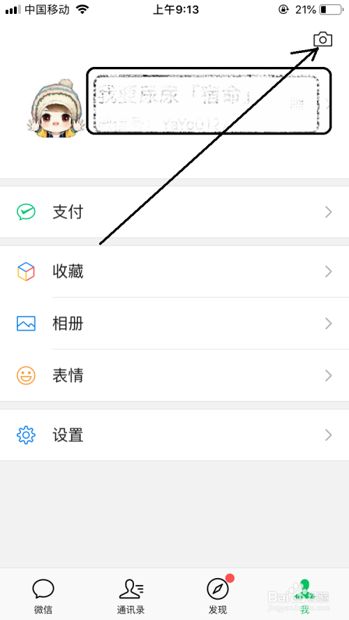 打开微信之后确保已经选择我的栏,然后在界面中点击相机图标。