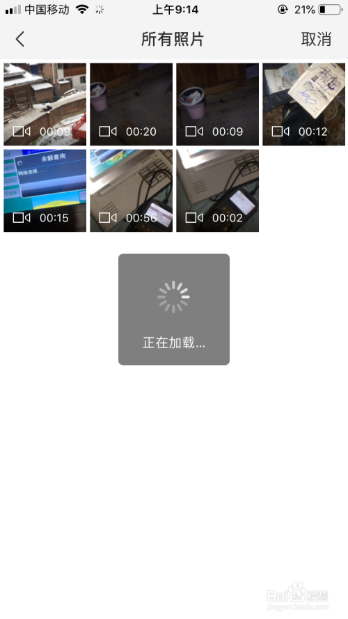 然后打开相册界面中选择视频文件。