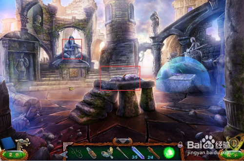 接着我们在图示的位置放上水晶球拿到锤头