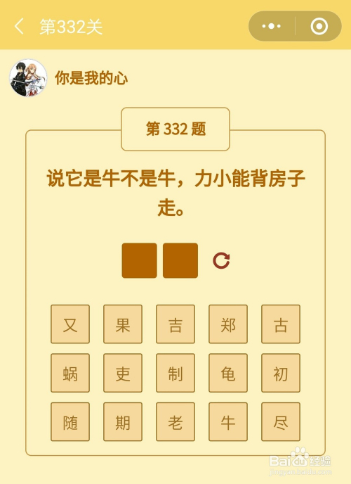 第332关谜底是蜗牛。