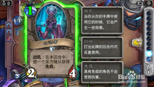 第四步,打出手中1费的亡语者卡牌,为场中后得复制生当作的5/5玛尔加尼斯增添免疫结果。