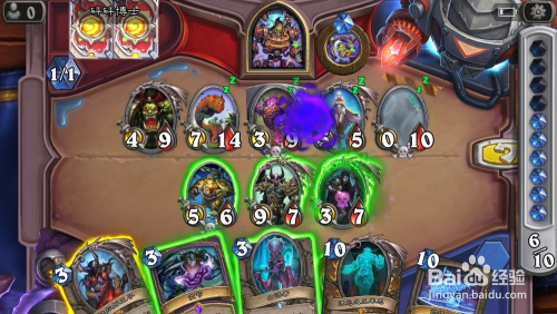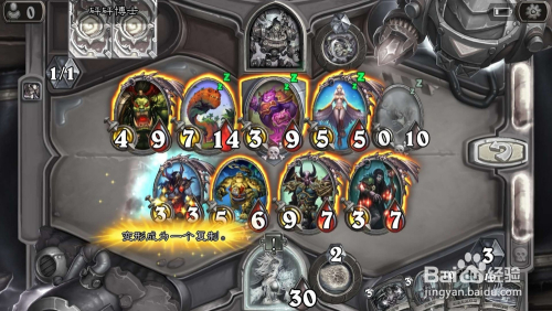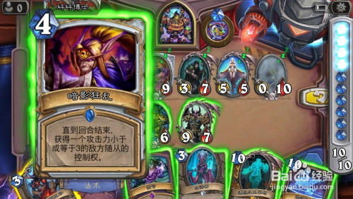 第一步:首先, 将手中4费的神通牌暗影狂乱打出,方针对面的 3/7鸦羽,将之节制到我方。