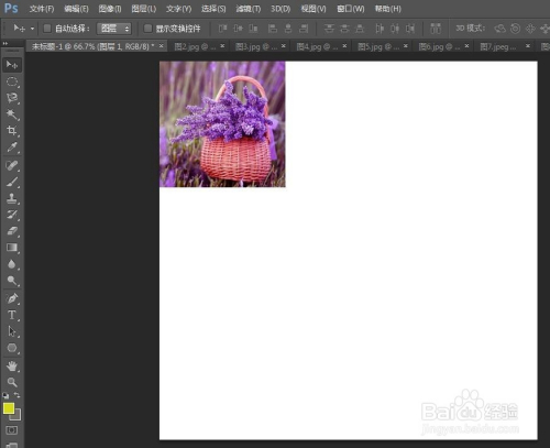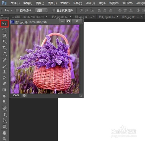 第五步:在左侧东西栏中选择“移动东西”,把图片移动到白色画布中。