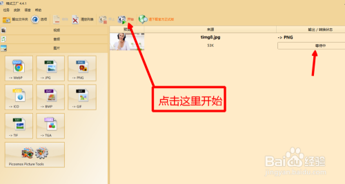 这时辰会进入到如下图这个界面,界面里有预览区,在预览区里有一个新图片生当作进度条。进度条上的字是:期待中,申明生当作新格局图片准停当了。点击界面中心上方的“起头"按钮,到下一步。