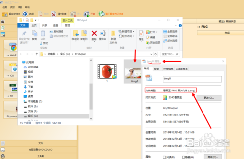 从下图里可以看到输出文件夹里的图片新文件,我们打开图片属性对话框,就能查看图片属性了。讲到这里:将图片格局转换当作PNG格局的操作流程,就介绍完了。