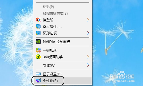 首先,我们在电脑桌面的空白处点击鼠标右键,然后选择右键窗口中的“个性化”;