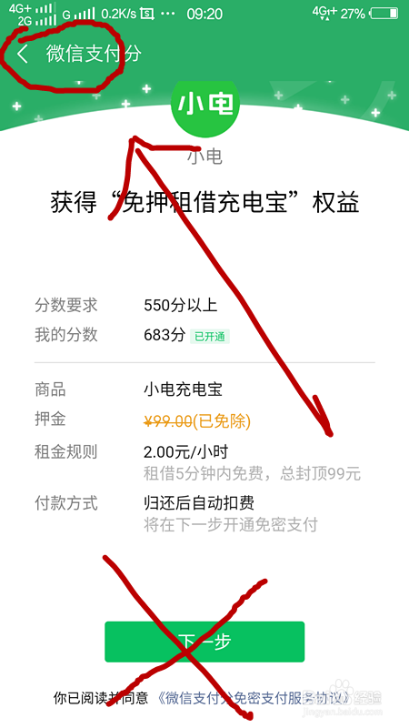 点击免押金之后。点击下方的申请开通微信付出分,这里注重了。下一步注重看清了!!不要点错!!