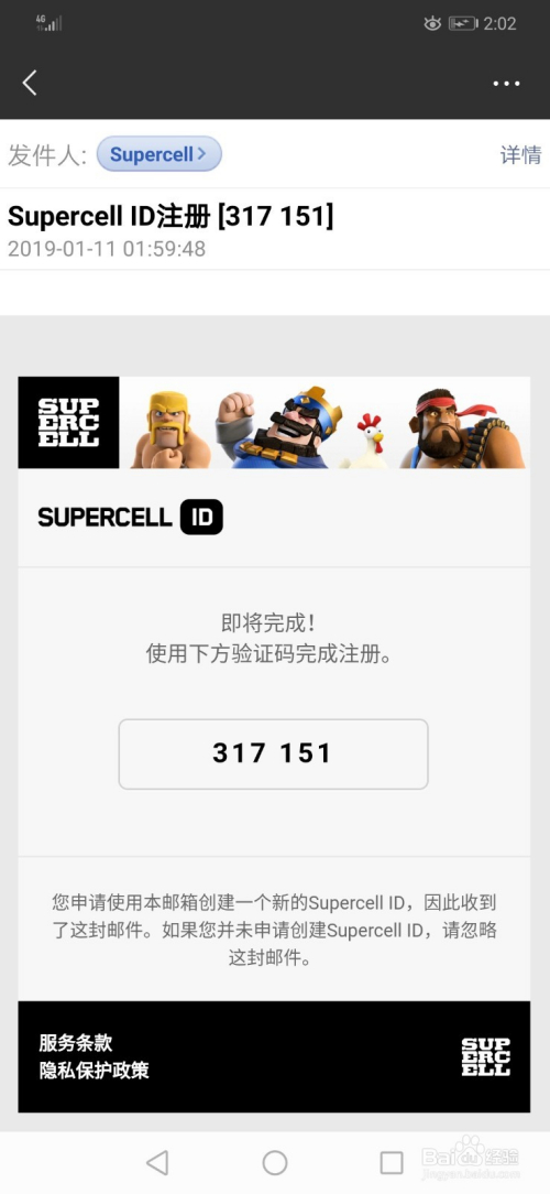 邮件:supercell ID注册的6位数字