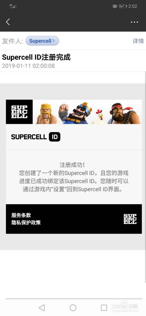 邮件:supercell ID注册当作功