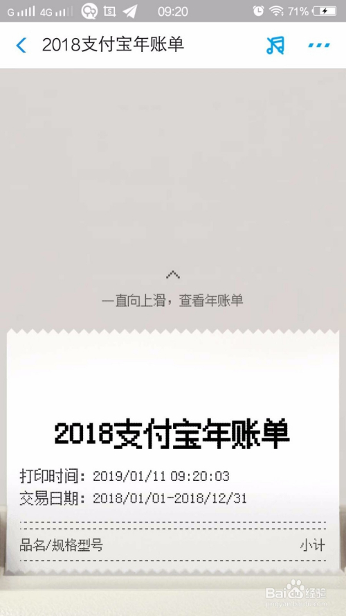 接下来弹出2018付出宝年账单,标的目的上滑动,起头查看。