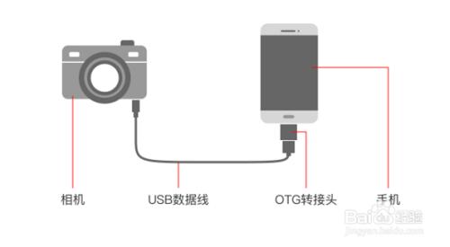 2. 经由过程相机数据线+OTG转接口毗连相机与手机。