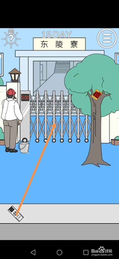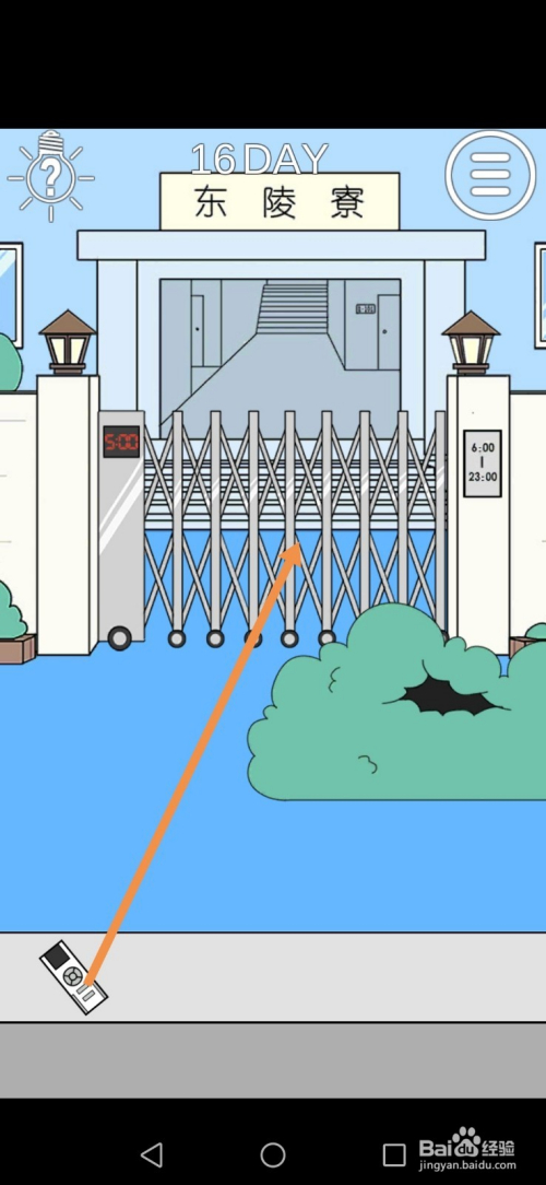 人失落下来后,点击遥控器,然后将遥控器拖动到宿舍门上。