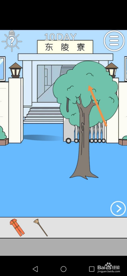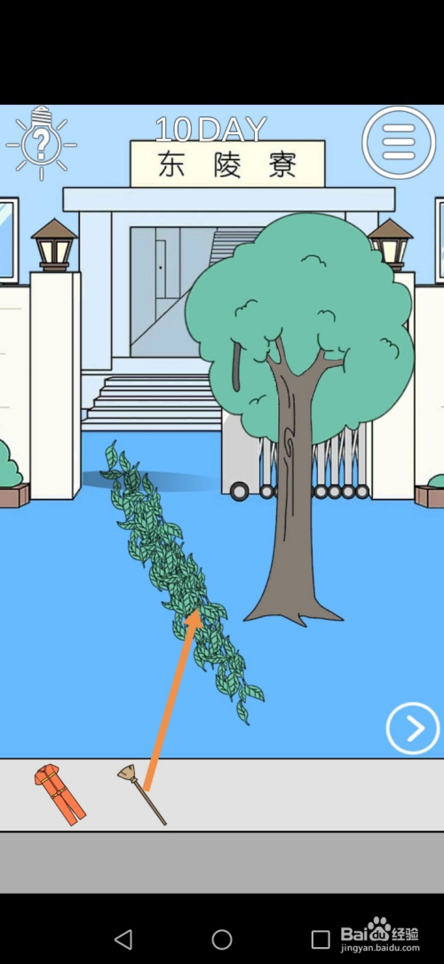 第10关点击标的目的右箭头到右边去。在右边,点击扫帚。