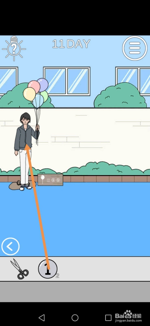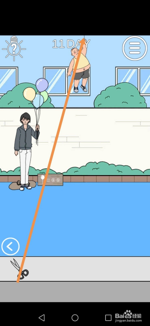 获得硬币后,将两个硬币拖动到卖气球的人身上,然后在胖子飞起来的时辰将铰剪拖动到胖子身上就可以过关了。