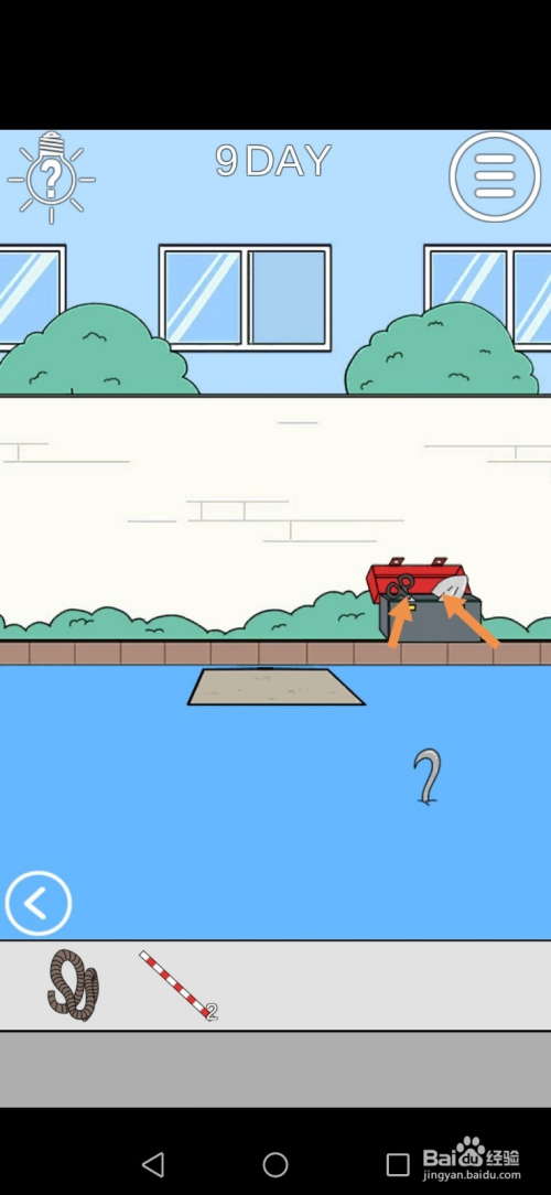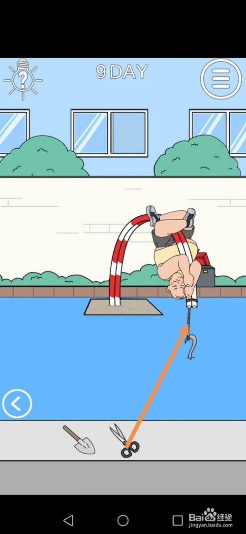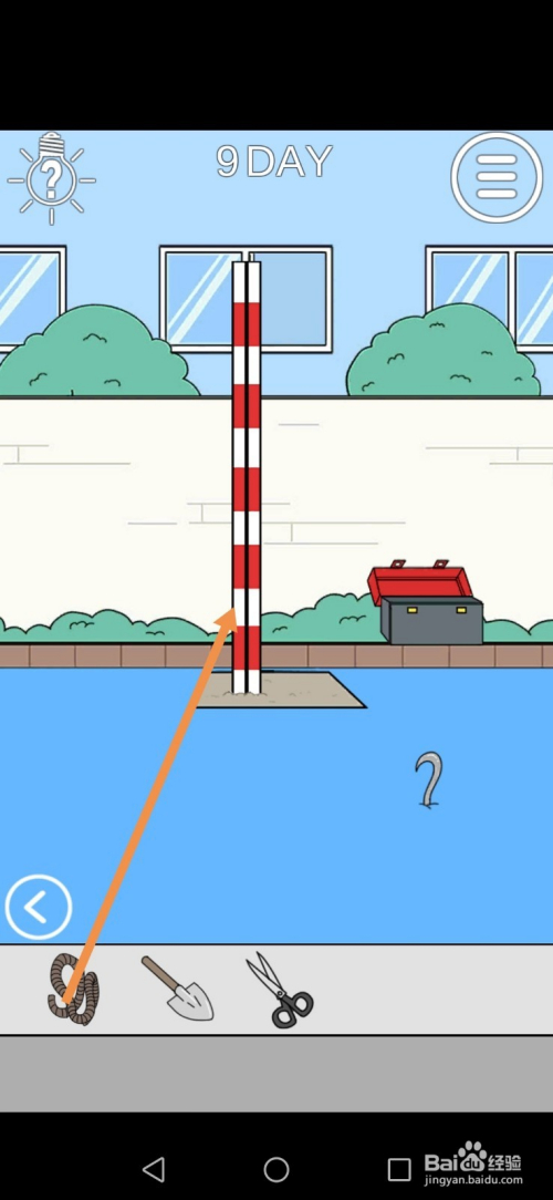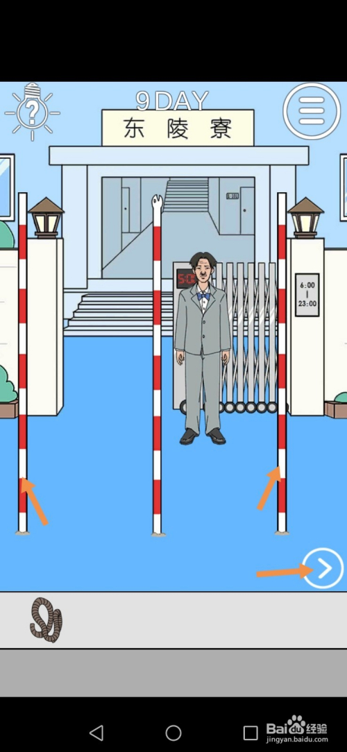 获得绳索后,点击摆布两根杆,然后点击标的目的右箭头到右边去。